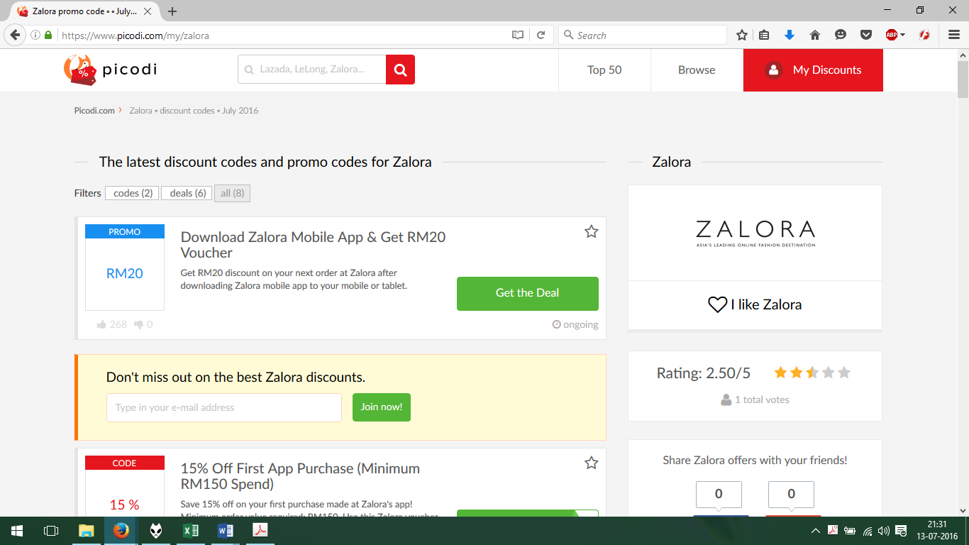 At Picodi.com, you can find the latest codes and promotions to several Malay and global online stores. Whether you’re looking for discount codes to global online stores such as Lazada or Zalora, you can find it all at Picodi.com.