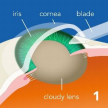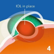 A small 'foldable' intraocular lens (IOL) is implanted into the eye to replace the cataract lens.