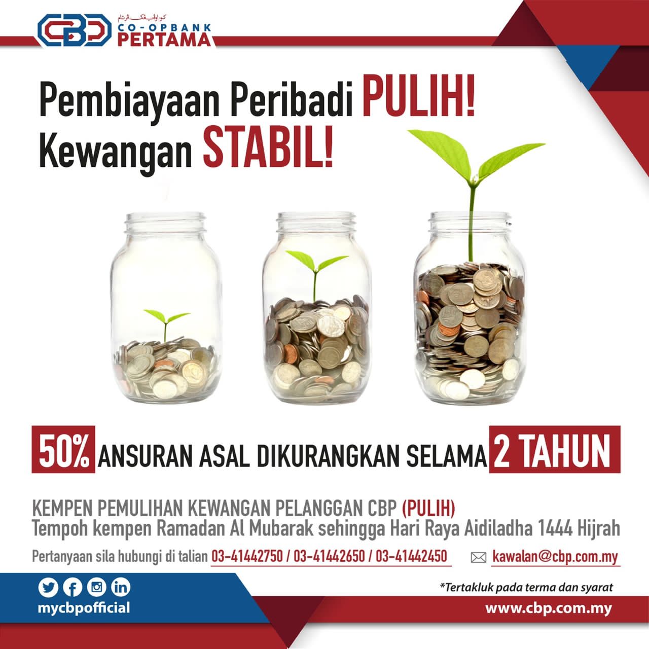 Pelanggan-pelanggan CBP yang ingin menyertai kempen ini boleh memohon menerusi emel ke Jabatan Kawalan dan Pemulihan, [email protected] atau hadir ke mana-mana cawangan CBP untuk mendapatkan borang dan diposkan ke Seksyen Pemulihan, Unit Penjadualan & Penstrukturan Semula, Jabatan Kawalan dan Pemulihan, C-03-05, Starparc Point, jalan Genting Kelang, Setapak, 53300 Kuala Lumpur.