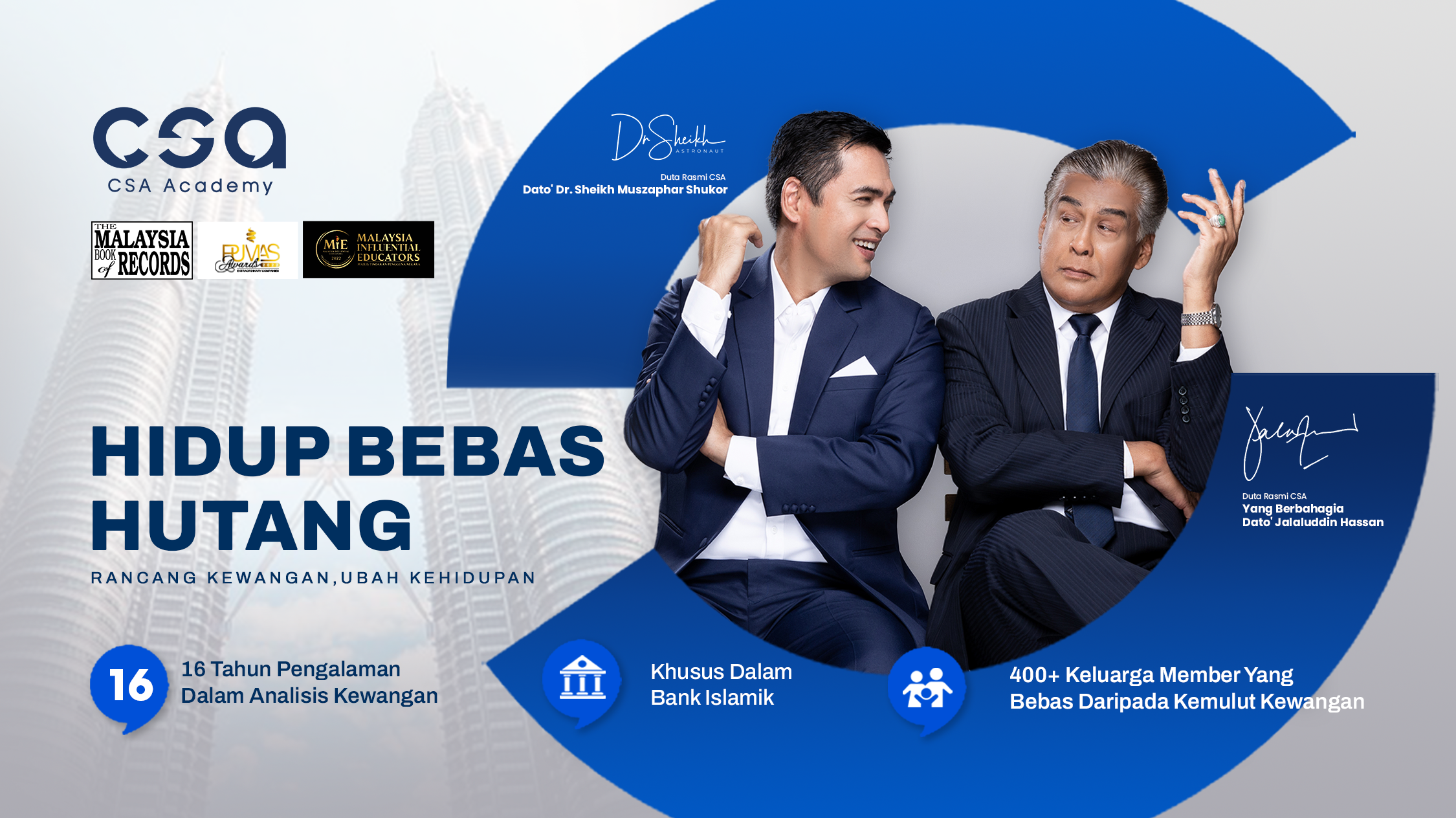 CSA Academy merupakan coach kewangan yang paling berpengalaman di Malaysia. CSA Academy bertekad membantu rakyat Malaysia menjamin kualiti hidup sekeluarga melalui Program Bebas Hutang. Dato' Dr. Sheikh Muszaphar Shukor dan Dato' Jalaluddin Hassan merupakan duta rasmi bagi CSA Academy. Rancang Kewangan, Ubah Kehidupan. Perancangan kewangan jangka masa panjang mampu membina asas kebebasan kewangan.
