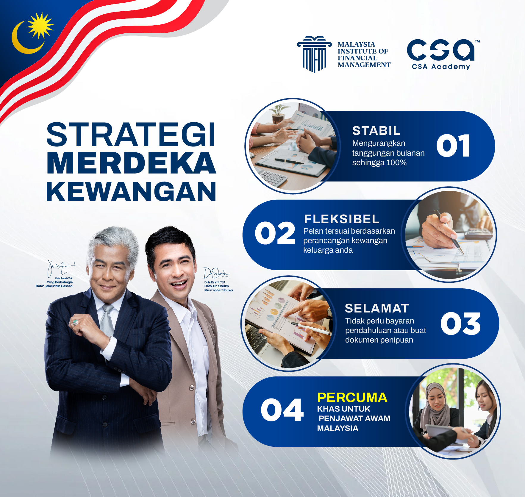 MIFM akan bekerjasama dengan Coach Kewangan CSA Academy (https://csaacademy.vip/) untuk melangsungkan PROGRAM MERDEKA KEWANGAN khas untuk Penjawat Awam Malaysia.
