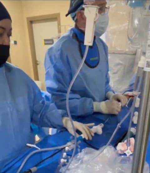 Image above: Dr. Ng Kim Fong, Cardiologist performs a final check on a patient in the cardiac catheterization lab prior to a surgical procedure.