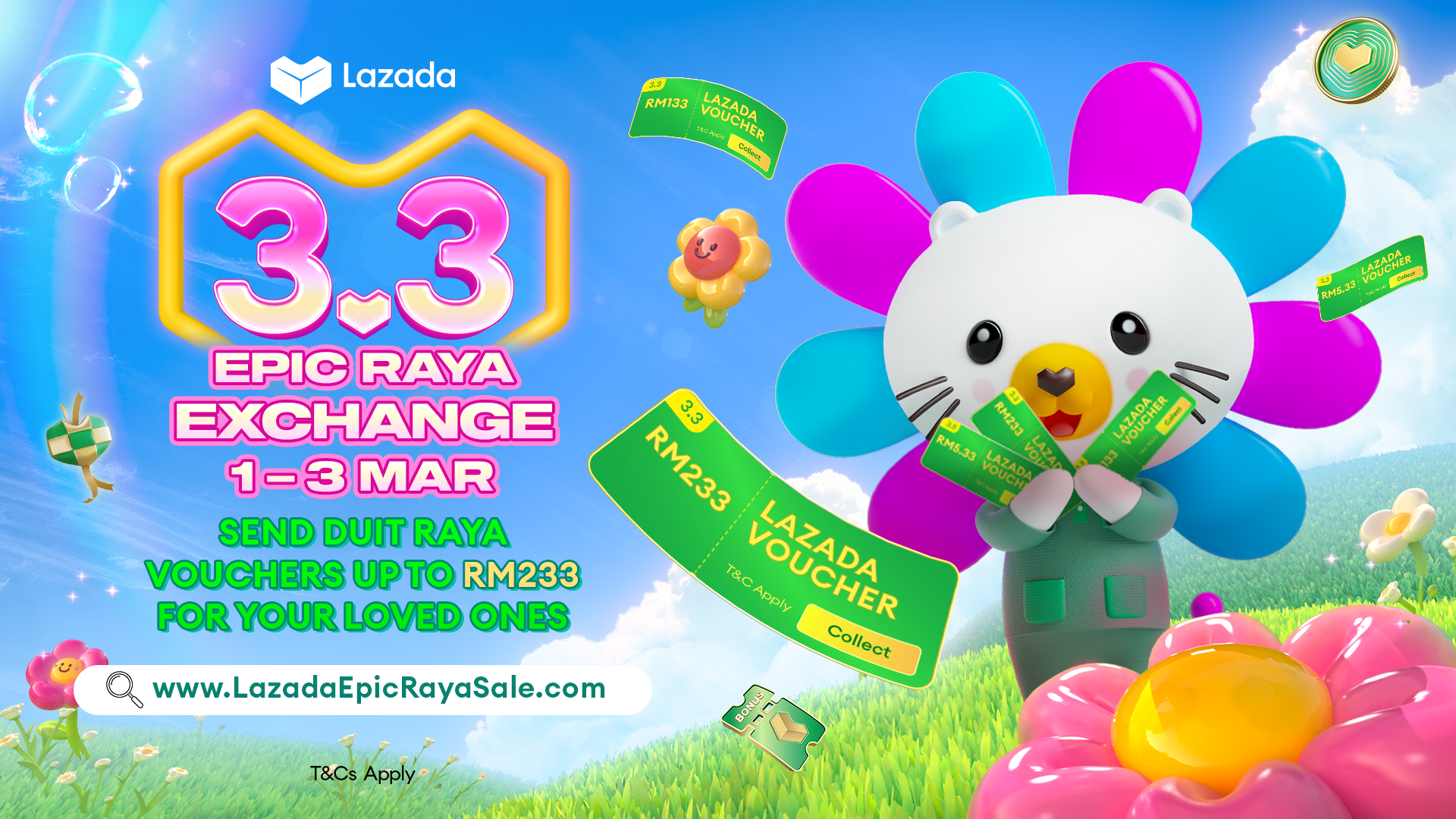 This year, shoppers can look forward to Lazada’s Epic Raya Exchange, which makes gifting even more exciting. Inspired by the tradition of giving duit raya (money packets) to family and friends, shoppers can send and receive surprise 3.3 vouchers worth up to RM233. Over RM45,000 in Lazada vouchers are up for grabs, and participants can send vouchers to up to five loved ones per day, with no limit on the number of vouchers they can receive.
