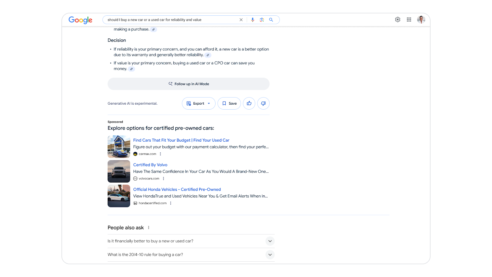 Google’s most advanced search experience yet, AI Mode, supports deeper reasoning, multimodal input, and follow-up interaction. Users are asking longer, more complex questions, and Google will soon test integrating ads within AI Mode responses in the U.S.—offering marketers even more high-quality touchpoints.