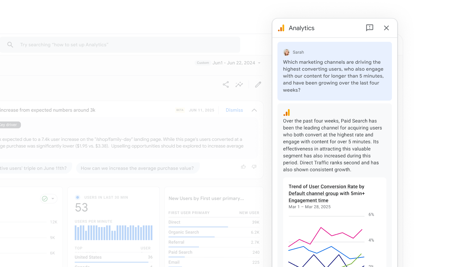 Google is also adding agentic capabilities—smart assistants that work with marketers, not just for them. In Google Ads, Agentic AI can suggest real-time optimizations, generate creatives, and manage campaigns based on performance data. In Google Analytics, it provides smarter, instant insights—saving teams time and surfacing opportunities faster.
