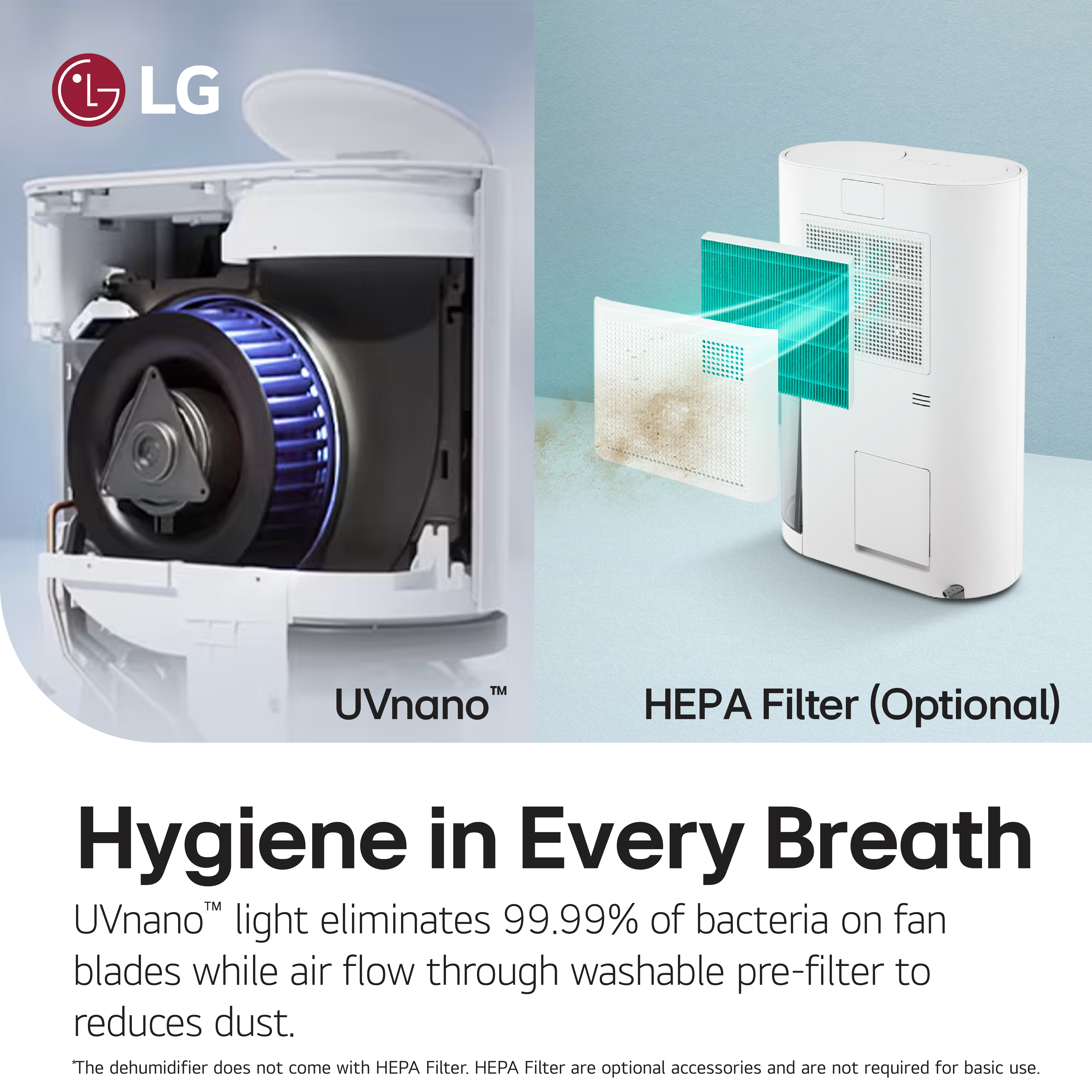 Beyond its powerful performance, the Dual Inverter Compressor also removes moisture fast while using less power, which is backed by a 10‑year warranty, giving homeowners confidence in its long‑lasting performance. This thoughtful engineering makes the LG PuriCare™ DUAL Inverter Dehumidifier a wise investment for healthier living.