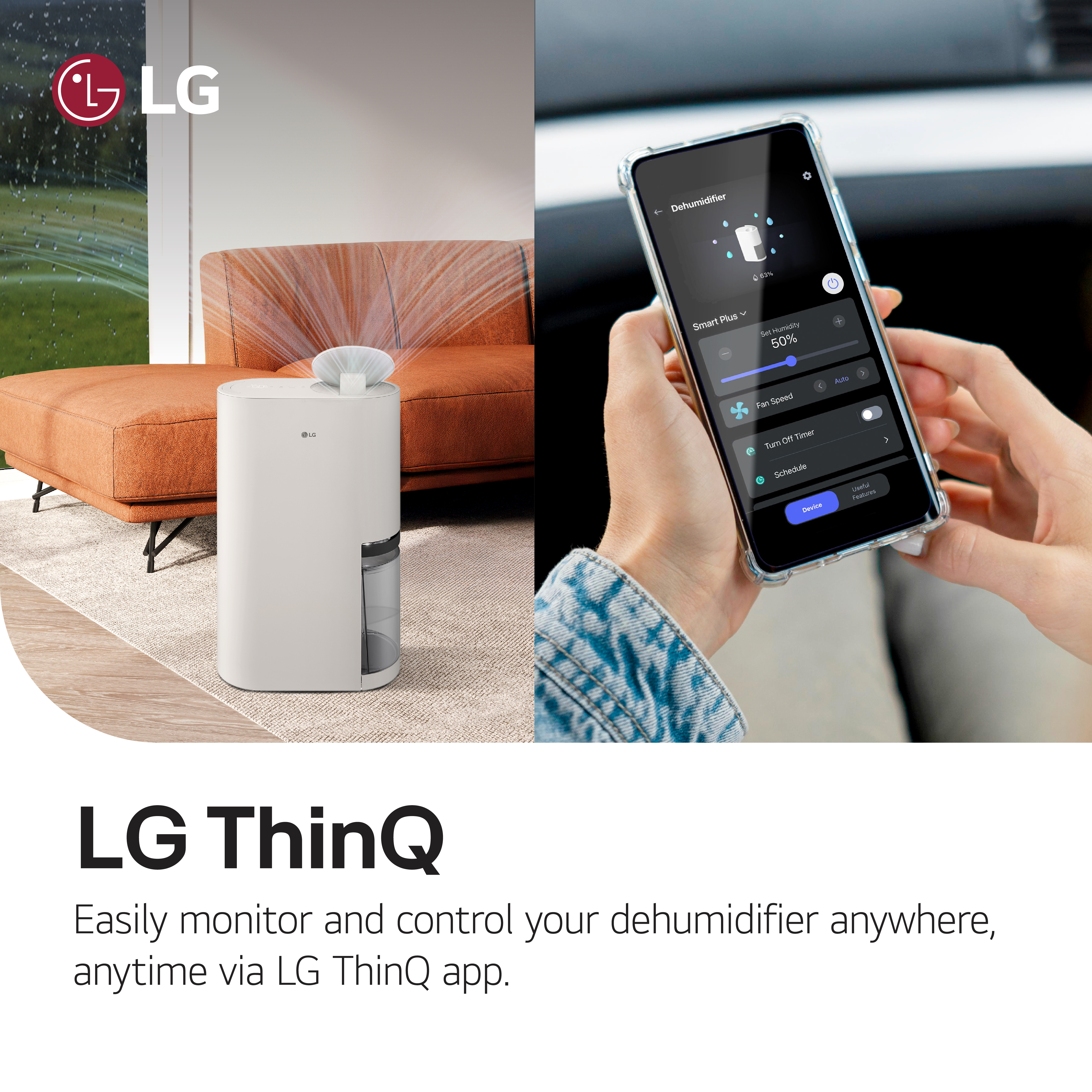 Adding a smart touch to daily use, the dehumidifier is equipped with LG ThinQ™ connectivity, enabling users to monitor energy usage in real time, receive alerts when the water bucket is full or when humidity levels change, and schedule operating times — all from their smartphone via Wi‑Fi remote access. Users can also personalise the transparent bucket's LED mood light, choosing from 8 vibrant colour options to match their interior or mood. This seamless integration of control, convenience, and ambience makes managing your home’s air quality easier than ever.