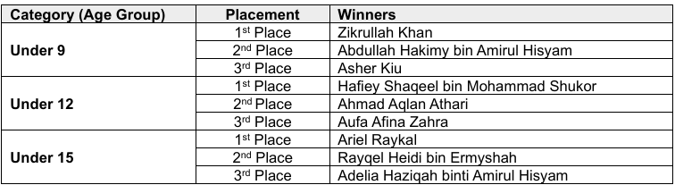 Prizes were presented to the top three winners from the under nine, 12 and 15 categories.