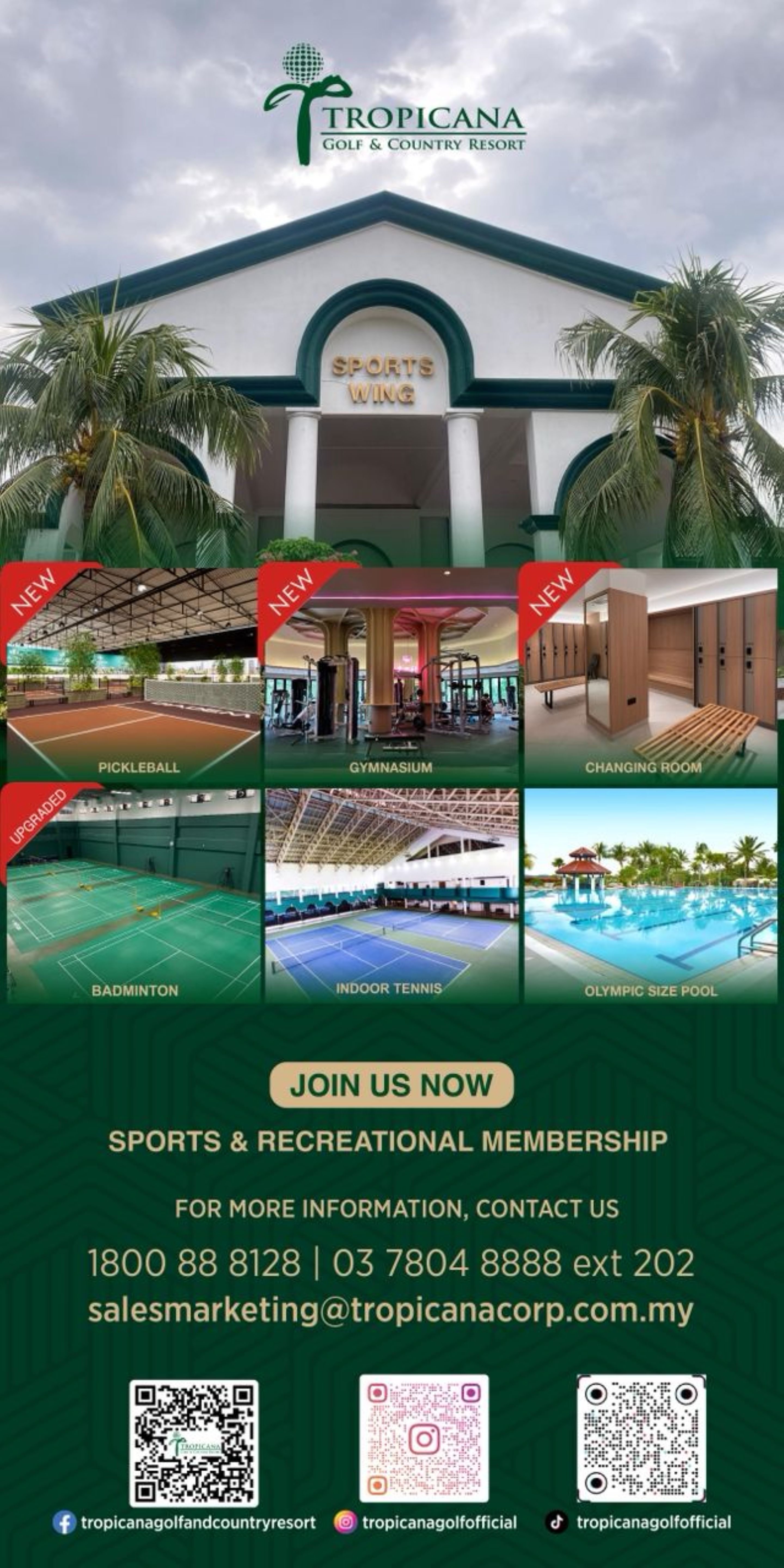 On top of an Olympic-sized pool and indoor tennis courts, Tropicana Golf & Country Resort recently refurbished its badminton courts, gym and changing rooms. Recognising the demand, TGCR recently unveiled brand new pickleball courts as well.