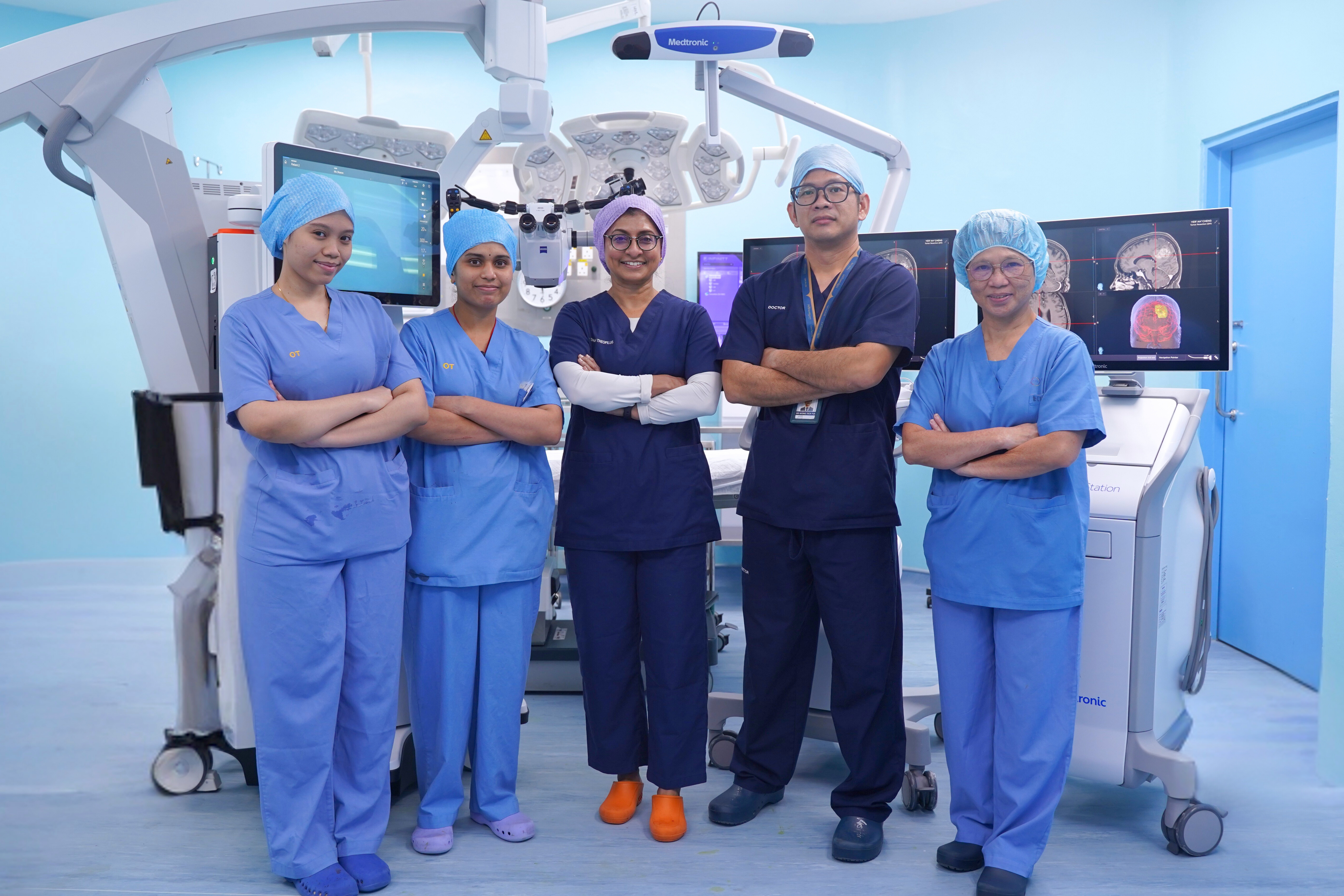 Consultant Neurosurgeon Dr Sharon Casilda Theophilus and her team recently carried out a minimally invasive procedure to remove a tumour on the left side of the skull. The operation combined the new system with a surgical navigation platform to assist accurate visualisation and instrument guidance.