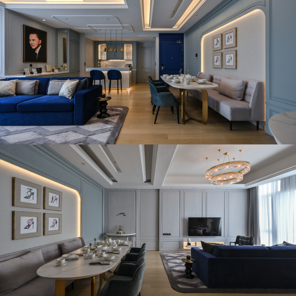 Start with a colour that holds meaning. In a recent project for renowned fashion icon Datuk Jimmy Choo, IDr Ooi used a deep royal blue as the feature colour, for its rich tone, but also its significance to him. “It’s a colour often worn by Datuk Jimmy Choo, and is closely tied to his iconic identity,” he shares. The colour was introduced at the main entrance door to make a strong first impression, and echoed throughout the space on upholstered pieces like the sofa and barstools.