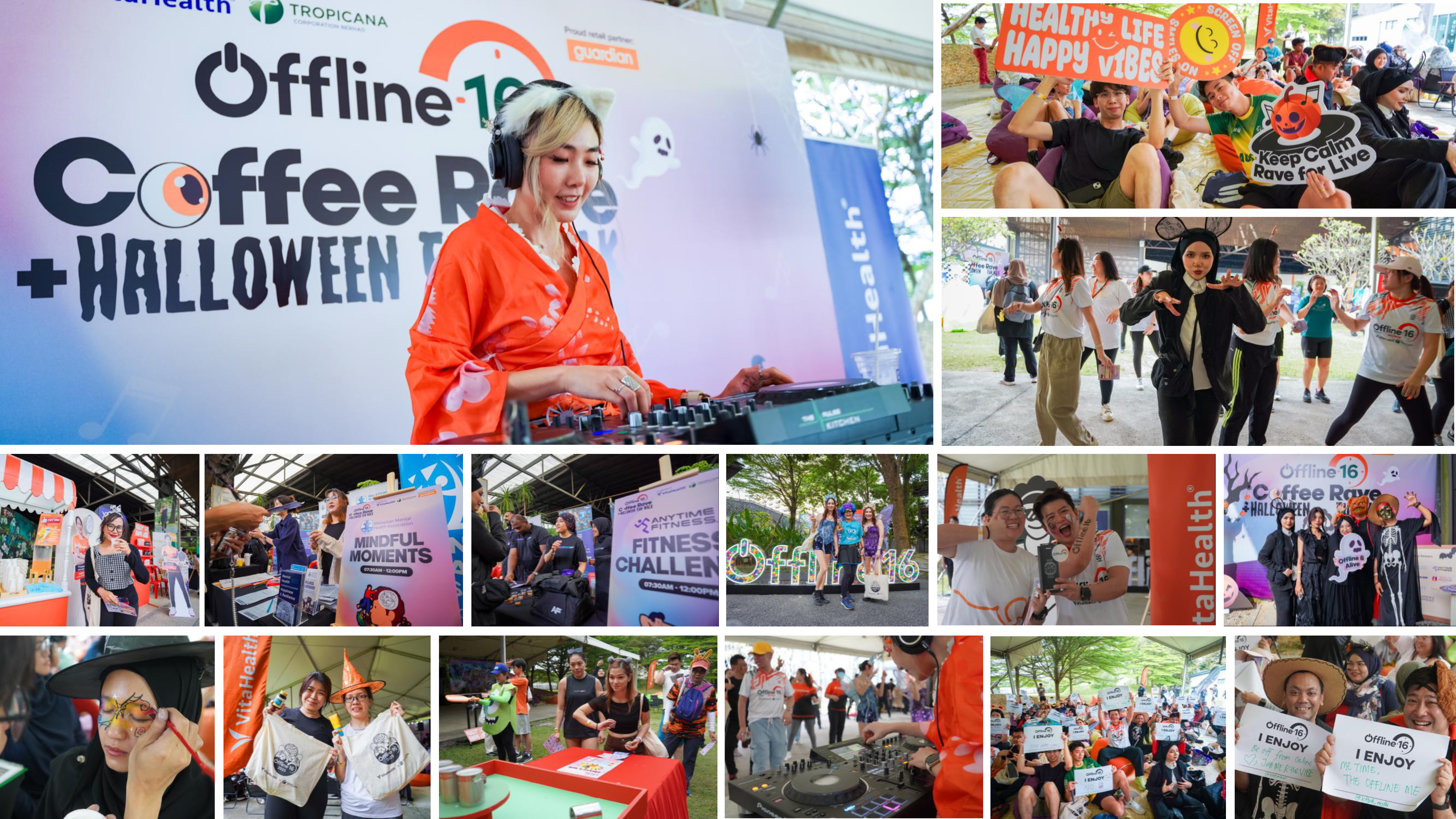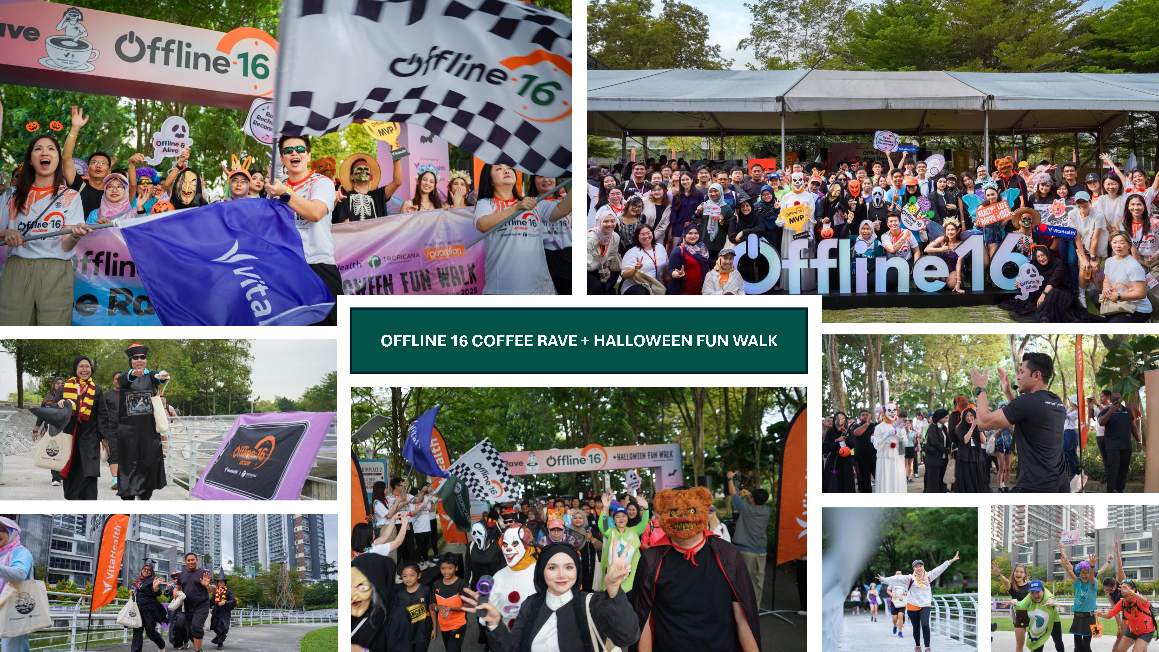 Held on 1 November 2025, the OFFLINE 16 Coffee Rave + Halloween Fun Walk attracted 300 participants to Tropicana Metropark Property Gallery and its 9.2-acre Urban Park. Coffee raves have been gaining popularity as a fun new way to experience wellness, and OFFLINE 16 brought the trend to life by connecting the community through coffee, music, and uplifting energy in a fully unplugged experience. The event kicked off at 7am with registrations, an event brief, a warm up exercise by Anytime Fitness, a 2km fun walk, followed by the coffee rave, carnival games, and a food bazaar. Each participant was presented with goodies worth RM300, such as a canvas bag, VitaHealth and Herbs of Gold supplements, Guardian products, Skechers shoe bag, Anessa sunscreen, coffee and pastry vouchers, and the chance to walk away with prizes worth up to RM15,000 from the lucky draw. To date, OFFLINE 16 has garnered a total of 1620 participants across 8 editions in Malaysia and Singapore. To be part of this exciting wellness movement, follow VitaHealth at @vitahealthmy and Tropicana at @tropicanacorp and @tropicanafoundation.