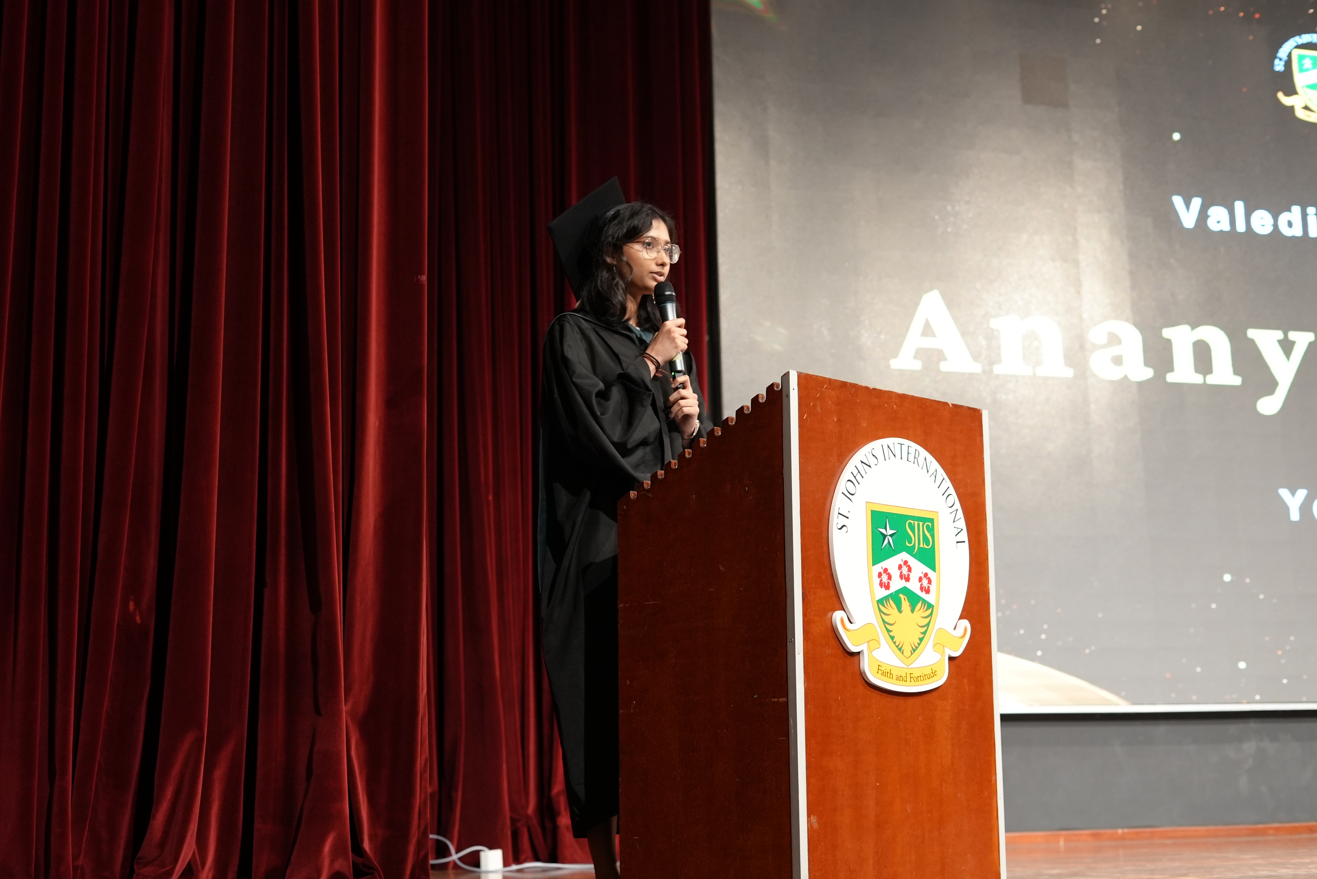 In her speech, Ananya Upadhya, the student valedictorian, reminisced about their student life in SJIS from the past years.