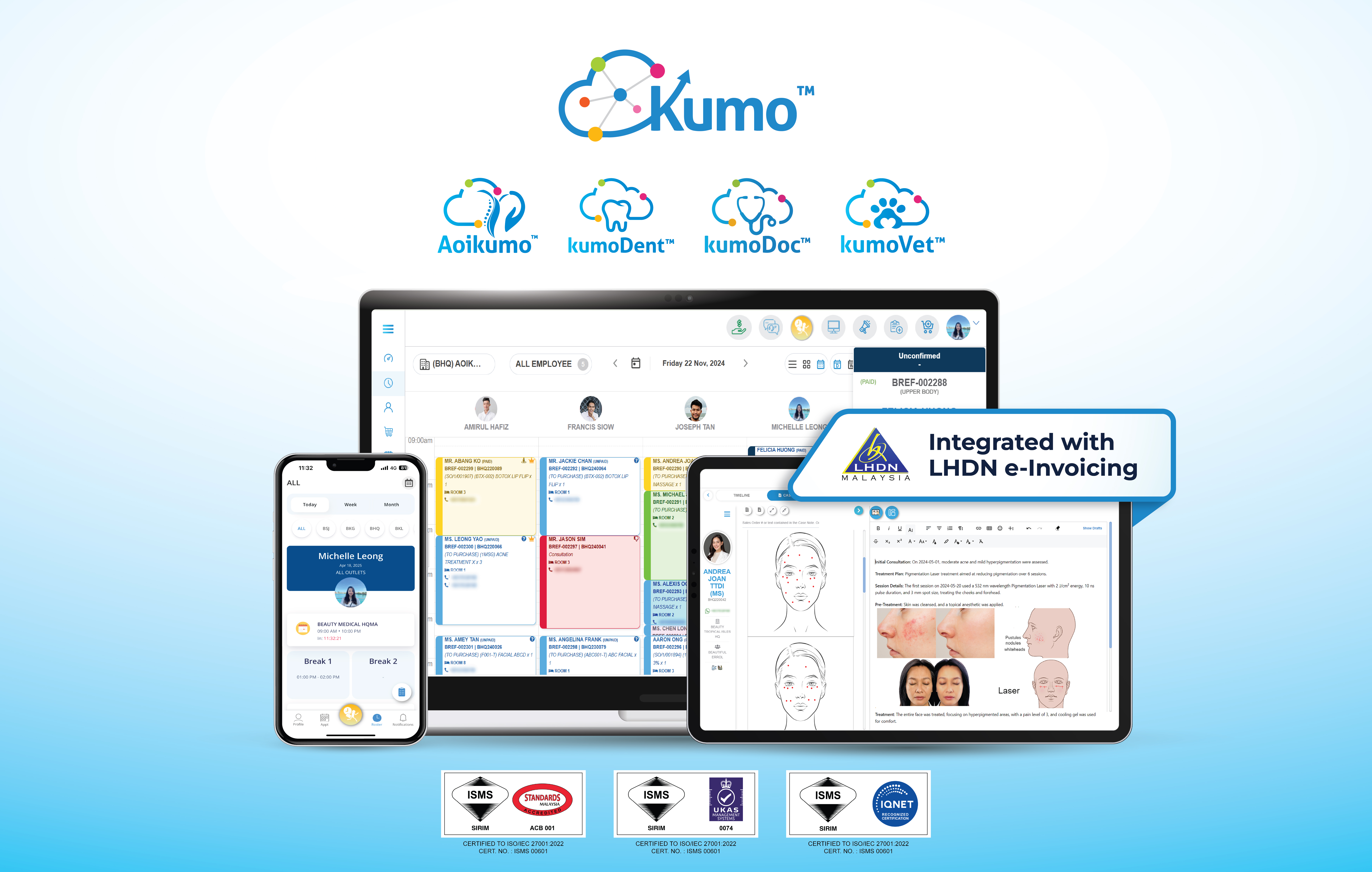 Founded a decade ago as a management system for wellness and beauty centres, Kumo™ has since expanded into a multi-sector healthcare platform serving dental, veterinary, aesthetics, grooming and primary care providers under four dedicated product lines: Aoikumo™, kumoDent™, kumoVet™ and kumoDoc™.