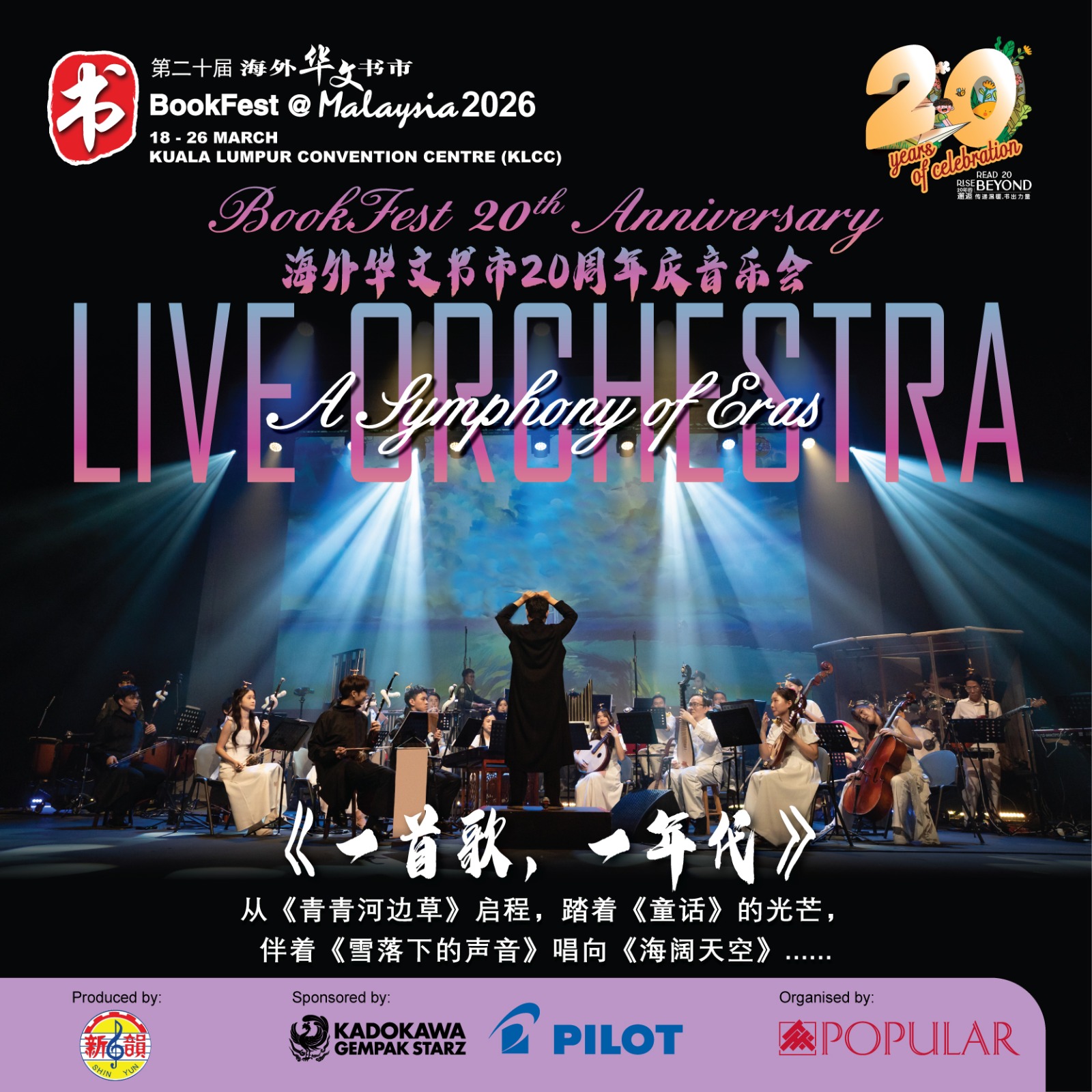 To mark its milestone celebrations, BookFest @ Malaysia 2026 presents a special Live Orchestra Concert on 23 March at 3.00pm at the KLCC Convention Centre, Conference Halls 1–3 (Level 3). The orchestra will feature 26 musical instruments under the direction of a conductor, performed by members of the Persatuan Bunyi-Bunyian Shin Yun, a distinguished ensemble celebrated for their seamless fusion of traditional Chinese music with contemporary orchestral arrangements. Audiences will enjoy a curated selection of iconic songs from the 1980s to 2000s, complemented by special guest appearances by Priscilla Abby and Fuying & Sam, promising an immersive musical experience for all generations. Tickets are priced at RM60 nett and available at selected POPULAR/HARRIS bookstores and POPULAR Online.