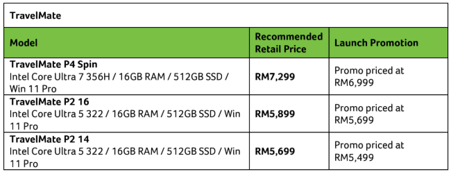 To celebrate the launch, Acer Malaysia is offering limited-time promotional prices for selected TravelMate models. The promotion is valid until 30 April 2026, while stocks last.