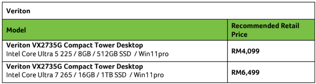 The new Veriton desktop series powered by Intel Core Ultra 2 series processors with up to 13 TOPS NPU, enabling next-generation AI-enhanced computing for modern workloads. Optional graphics upgrades are also available on selected configurations to support more demanding business applications.