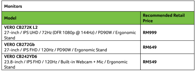 The new Acer TravelMate Series, Veriton Series and CB2 Series Vero monitors are available immediately through authorised Acer commercial resellers in Malaysia.