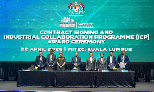 Defense Minister (MENHAN), Datuk Seri Mohamed Khaled Nordin, when commenting after officiating the Ministry of Defense (MINDEF) Contract Signing and Memorandum of Understanding (MoU) Exchange Ceremony held in conjunction with the DSA and NATSEC Asia 2026 exhibition at the Malaysia International Trade and Exhibition Centre (MITEC), Kuala Lumpur, said that Malaysia’s primary focus is shifting from being a buyer to one capable of sustaining, maintaining, upgrading, producing components, and ultimately developing its own defense systems in todays complex strategic environment.