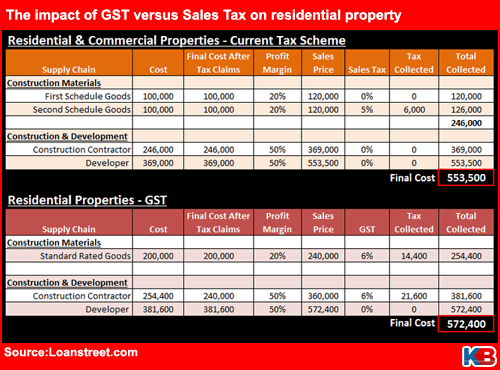 在现有的销售税中,一些建筑材料是没有征税的,其他相关物料及服务的销售税也只是5%;因此,在新的消费税之下,这些供应商和承包商如今也要付税。