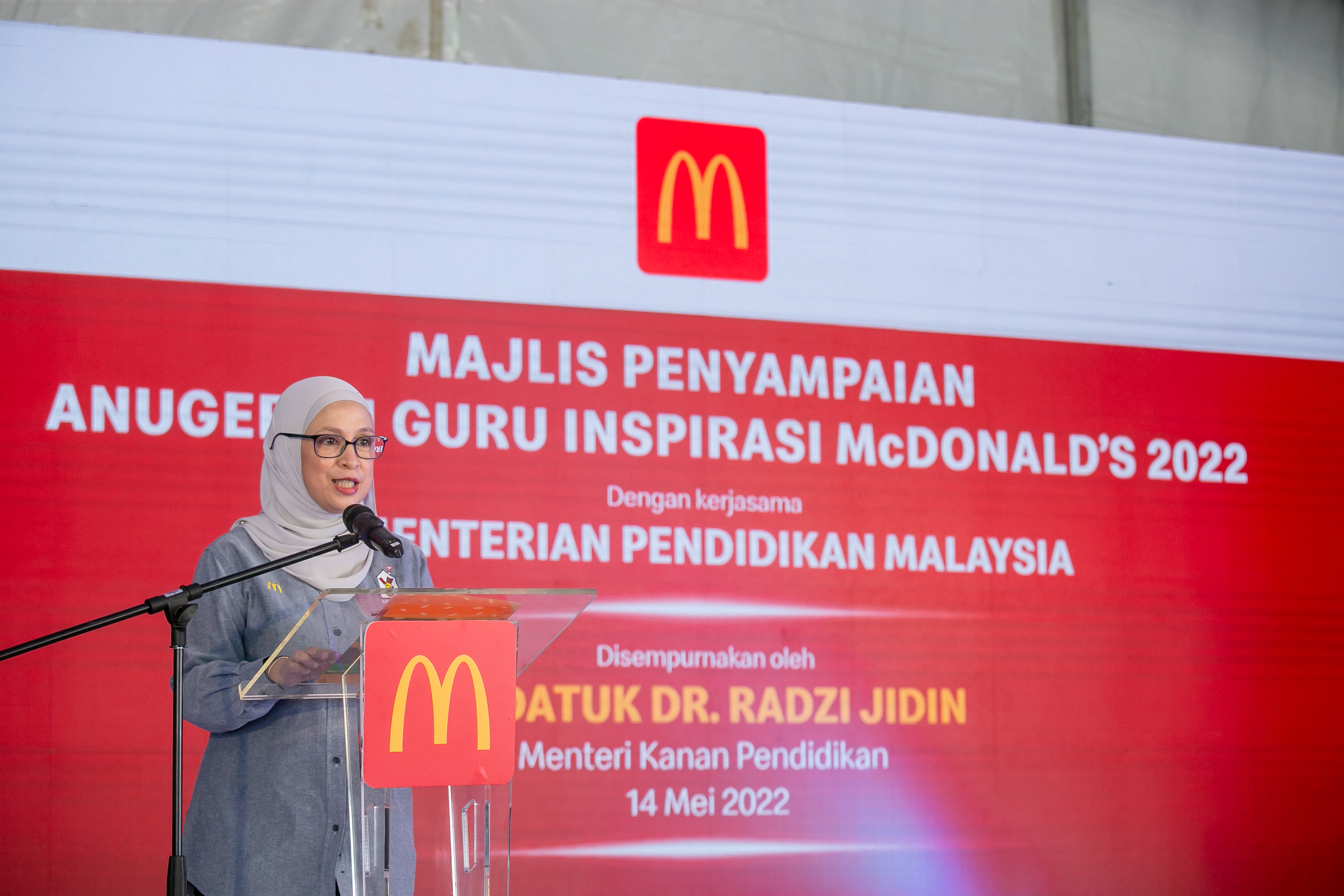 McDonald’s Malaysia hari ini mengumumkan 25 penerima Anugerah Guru Inspirasi McDonald’s 2022. Anugerah ini adalah untuk menghargai para guru Kementerian Pendidikan Malaysia (KPM) yang “luar biasa” atas jasa mereka meningkatkan kecemerlangan akademik dan mewujudkan akses kepada pendidikan untuk anak murid.