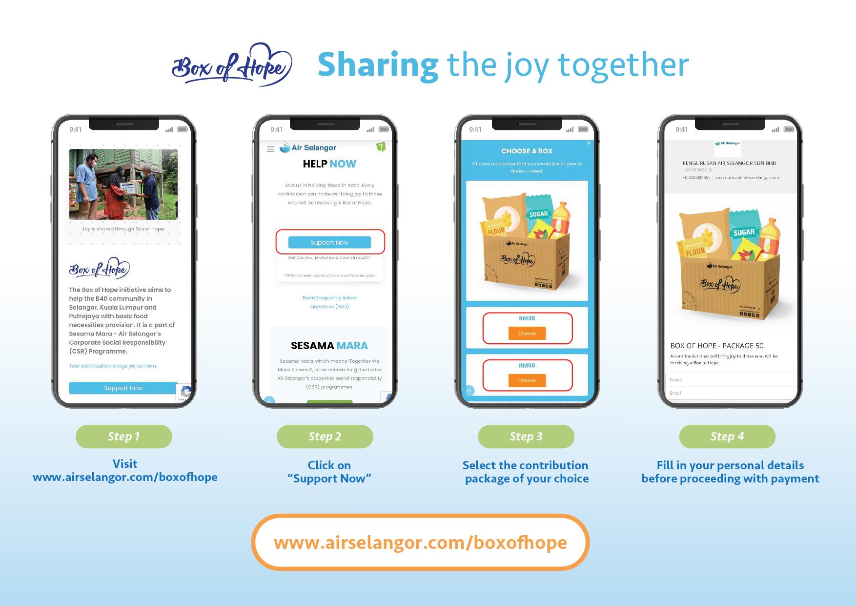 Air Selangor is committed to giving back to the community and intends to increase the quantum of its donation to the less fortunate this year. It encourages the public to continue to come together in extending aid to those in need, especially the B40 group, via the Box of Hope.