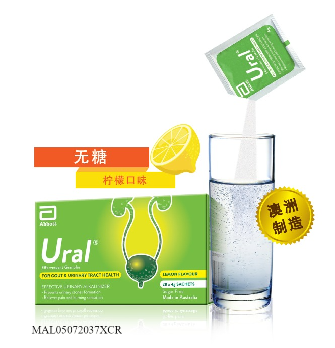 Ural由澳洲制造,为不含糖的柠檬味尿液碱化剂,味道爽口且易于服用。