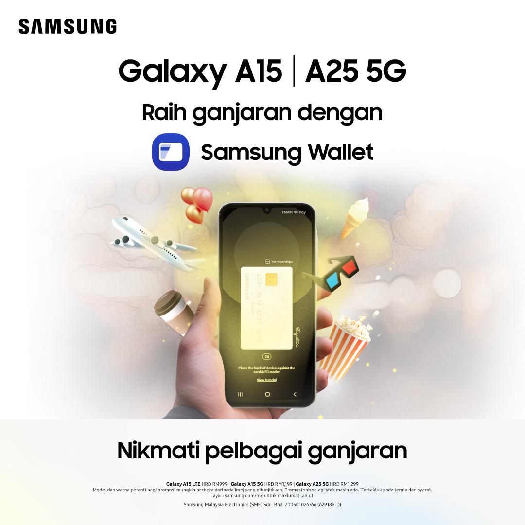Siri telefon pintar pertengahan Samsung Galaxy A15 dan A25 5G menawarkan pelbagai fungsi canggih yang memudahkan pelbagai tugas harian anda seperti produktiviti, fotografi, sekuriti dan banyak lagi. Malah siri ini kini menjadi salah satu telefon pintar pertengahan yang memperkenalkan Samsung Wallet, dompet digital yang membolehkan anda belanja untuk mendapatkan ganjaran.