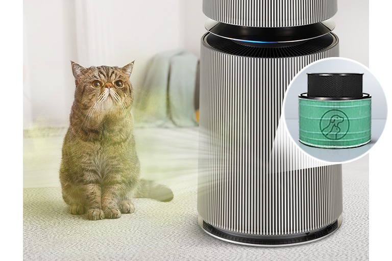 LG PuriCare™ 360º Alpha PET Penulen Udara mempunyai ‘PET Mode’ yang direka untuk mengatasi masalah bau dan bulu haiwan peliharaan. Teknologi ini boleh menangani masalah bulu haiwan di permukaan rendah, dan menapis 35% lebih banyak bulu.