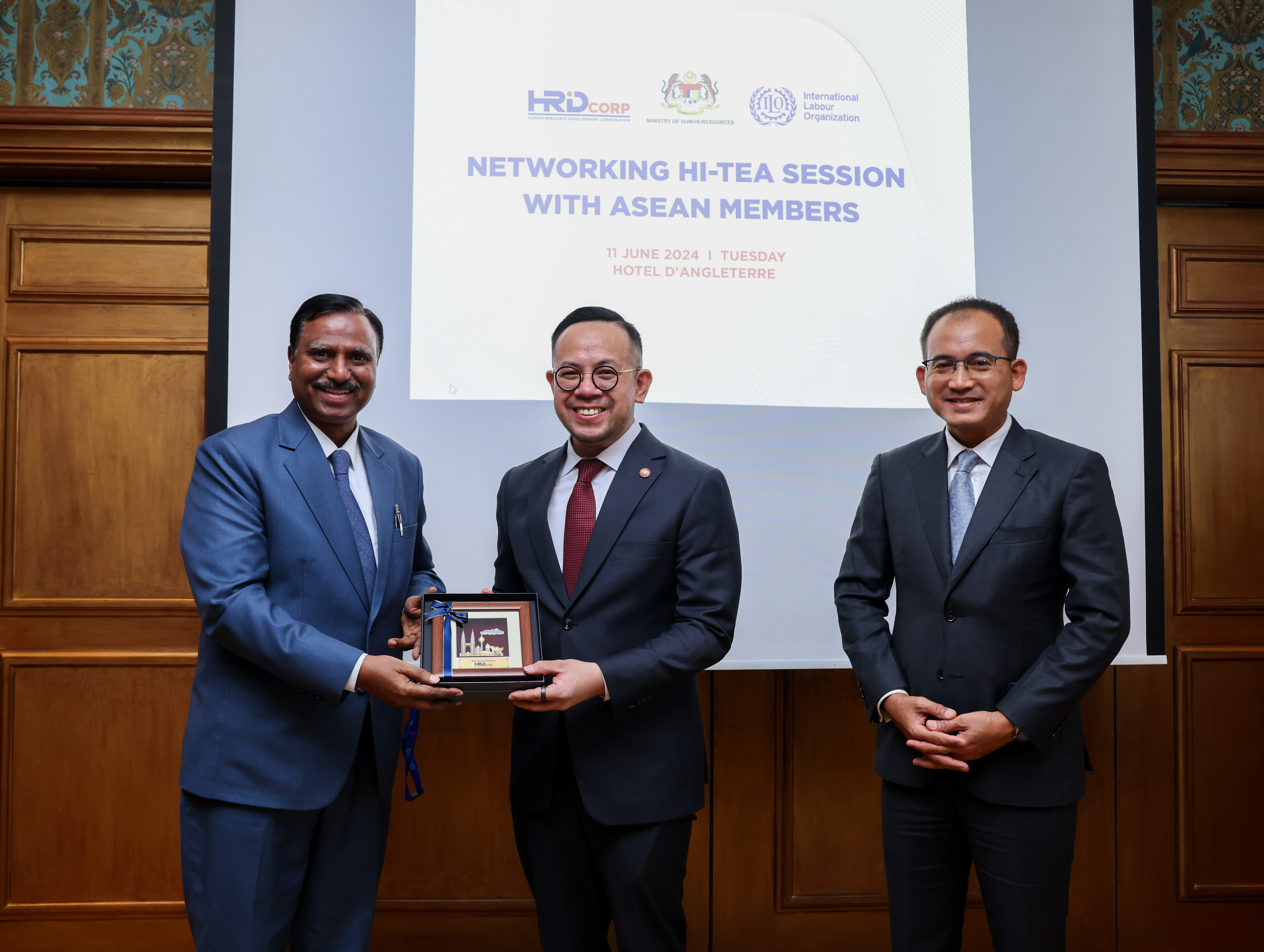 Menteri Sumber Manusia, Steven Sim Chee Keong menekankan aspirasi Malaysia untuk menganjurkan Tahun Kemahiran ASEAN 2025 dengan kerjasama Pertubuhan Buruh Antarabangsa (ILO) dalam sesi perbincangan bersama sembilan pemimpin ASEAN, di Geneva, hari ini.
