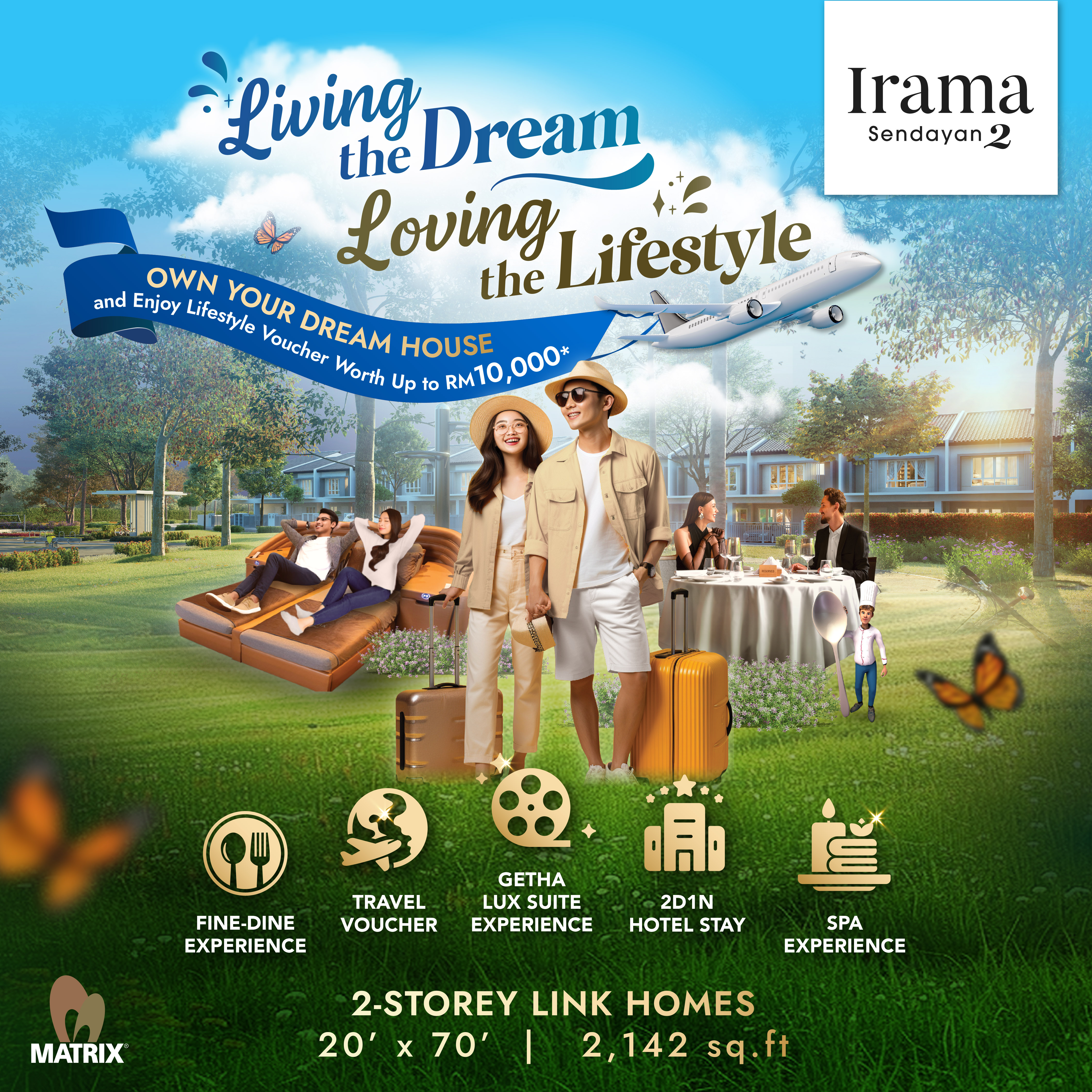 Mulai 19 June hingga 18 September 2024, jika anda membeli sebuah unit dari Irama Sendayan 2, anda akan menerima pakej gaya hidup secara percuma* (tertakluk kepada terma dan syarat)*