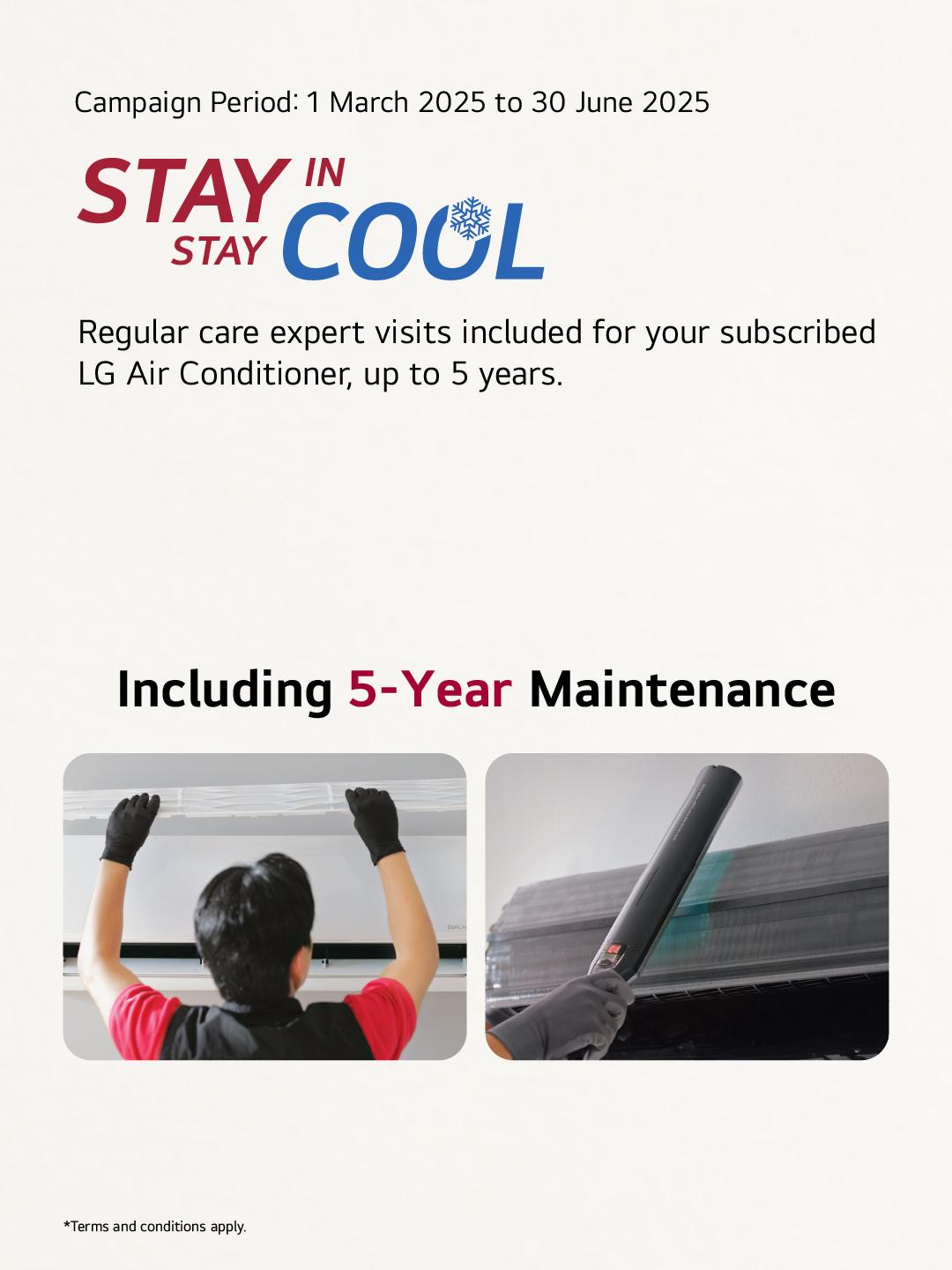 When you subscribe to selected LG air conditioner models — you’ll enjoy scheduled professional maintenance service for up to 5 years. That’s half a decade of expert care, ensuring your unit stays in optimum condition while you stay cool and stress-free!