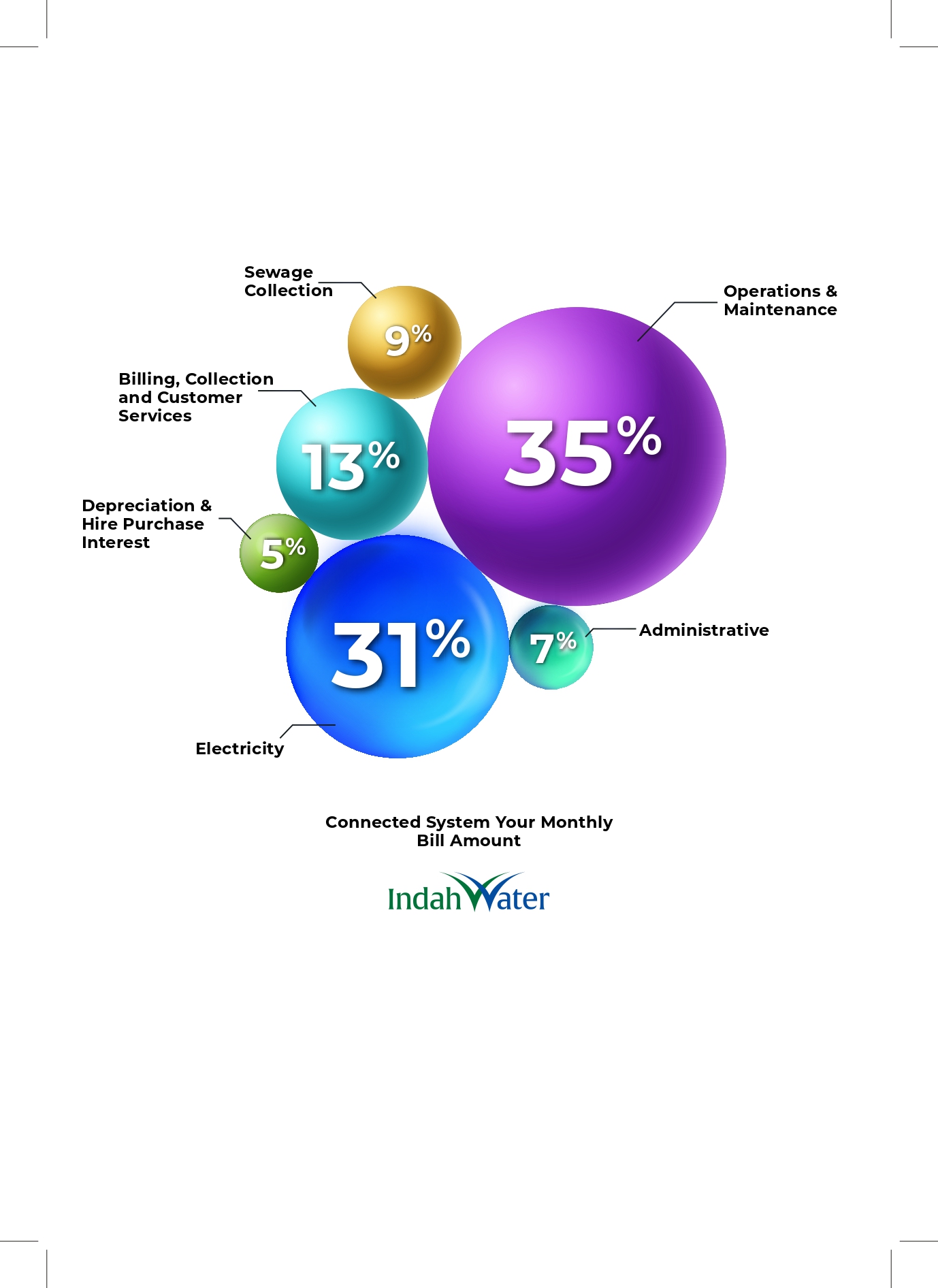 For connected systems, the charges contribute to the development, operation, and maintenance of Malaysia’s modern sewerage infrastructure. This includes the operations and maintenance of 9,133 sewage treatment plants and pumping stations and more than 22,000km network of sewerage pipelines, that serves a Connected Population Equivalent (cPE) of 32 million. Monitoring and compliance to environmental regulations, as well as upgrades and repairs to aging infrastructure is among its key roles.