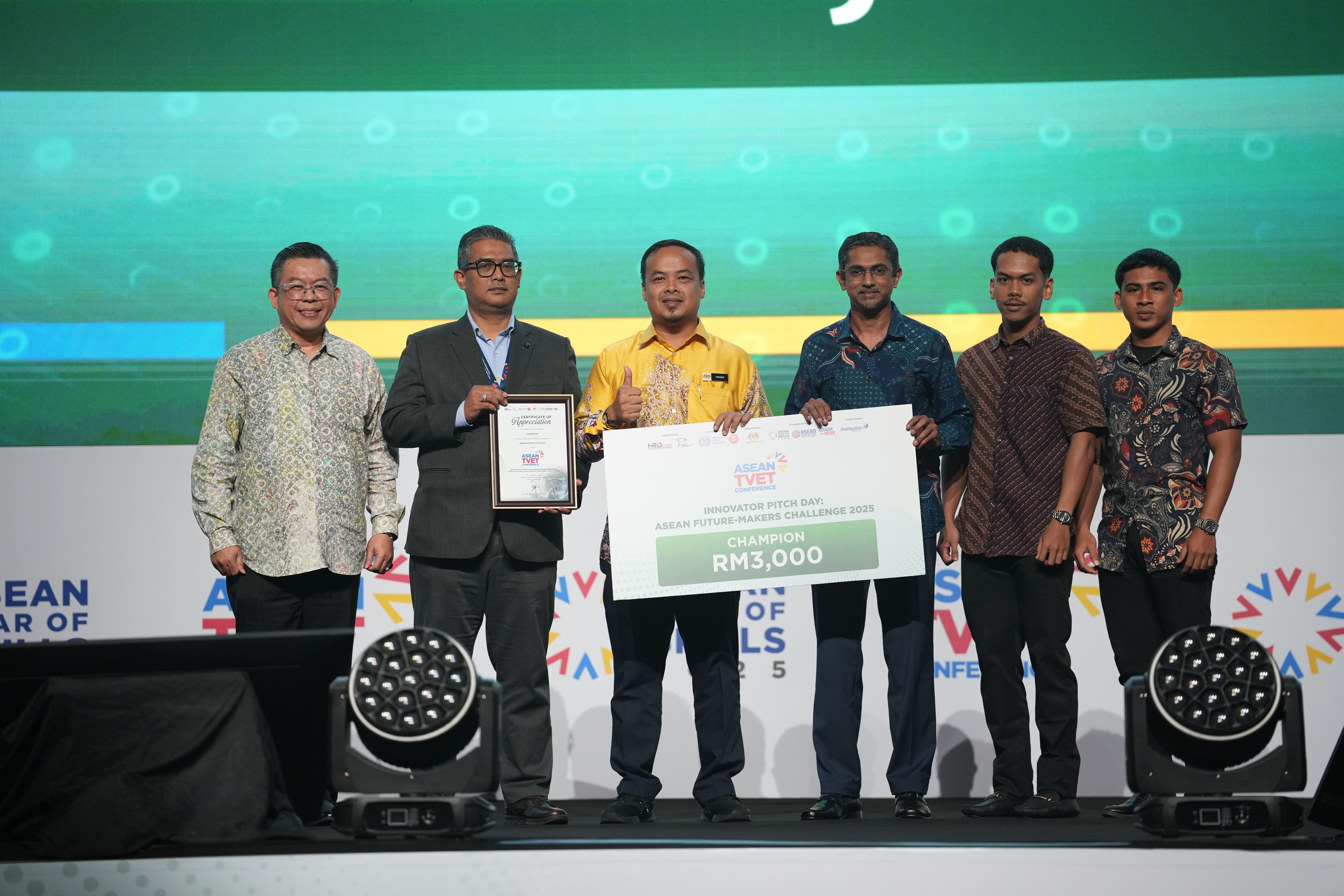 The ASEAN TVET wrapped up on a celebratory note with the Innovator Pitch Day: ASEAN Future-Makers Challenge 2025, where fresh ideas and bold solutions took centre stage. The challenge, created to spotlight the technical talent and entrepreneurial spirit of TVET graduates and industry partners, drew 58 submissions nationwide from 1 – 30 July 2025 via the AYOS 2025 portal. From these, 20 standout teams earned the chance to pitch their innovations live to an audience of delegates and judges.