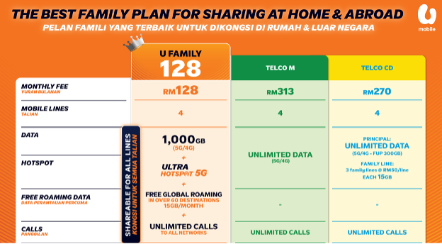 While the phones are the star of the show, the reason this deal works so well is the U Family 128 Plan, U Mobile’s high-value multi-line plan.