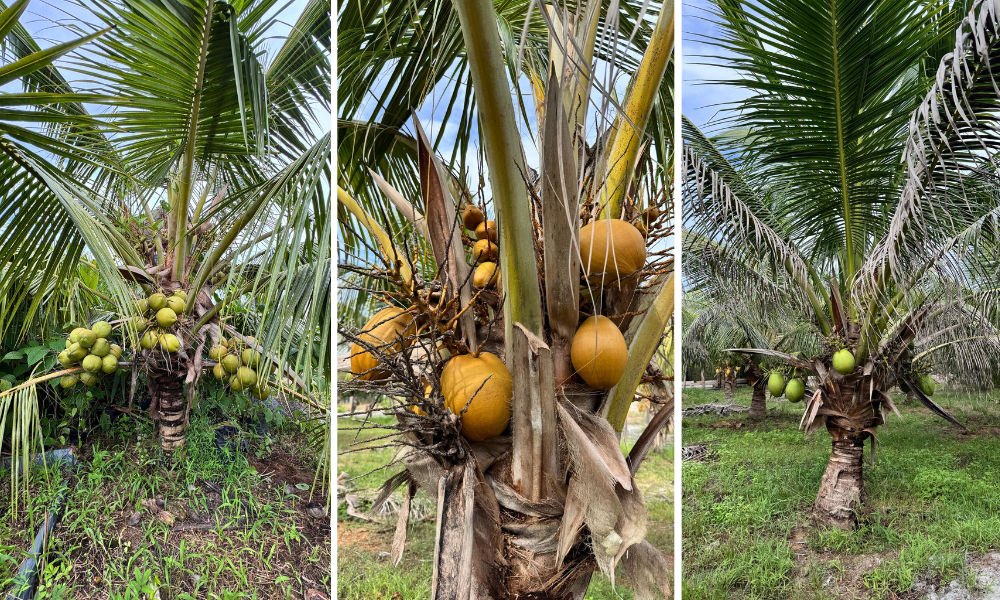 In a separate field trial conducted at a coconut farm, trees affected by extreme heat had experienced severe stress, leaving them scorched and significantly impacted. However, following the combined application of IWK’s organic fertiliser and IWK’s plant booster over a five-month period, the results were notable. The coconut trees gradually recovered, with the emergence of new fronds (leaves) and resumption of fruit production.