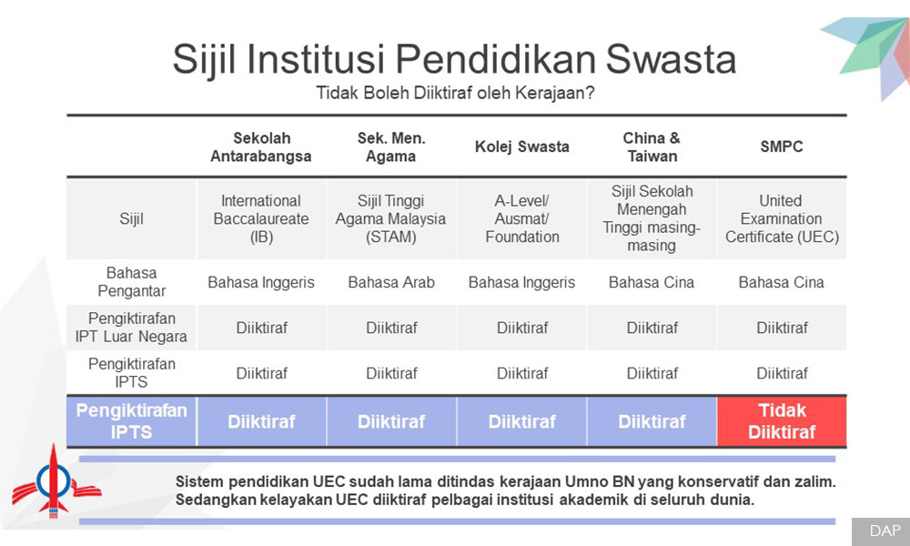 其中,主要的原因在于,巫统在大马教育文凭(SPM)历史课本中,根本没有提及《1996年教育法令》,企图掩盖事实并继续培养单元流教育的支持者。