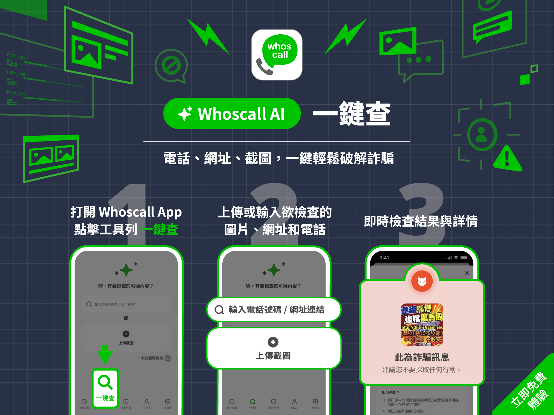 Whoscall 全新功能「一建查」,用AI轻松防诈!