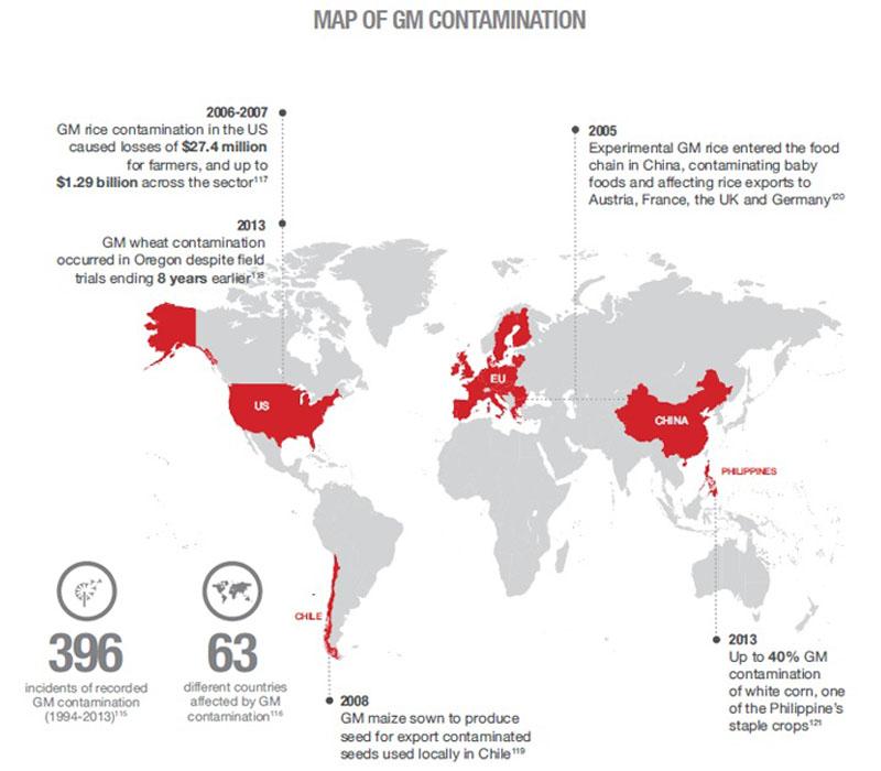 图1:全球转基因农业污染案例(取自绿色和平)
