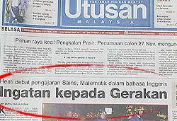 但马来主流传媒(主要是马来前锋报)反应的强烈程度,倒是令人寻味。2005年11月8日,马来前锋报在封面版刊登了题为《提醒民政党--停止英语教数理的辩论》。它似乎预感到,如果不施压制止,一埸反对以英语教数理的辩论,即将在全国范围内爆发。