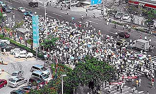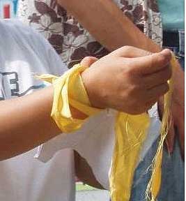 熟悉的黄丝带不是只在马来西亚出现,这张图片的拍摄地点不在马来西亚而是在中国的厦门市。在6月1日,中国的儿童节,有人组织厦门市民佩戴黄丝带以反对海沧区建PX项目的活动。