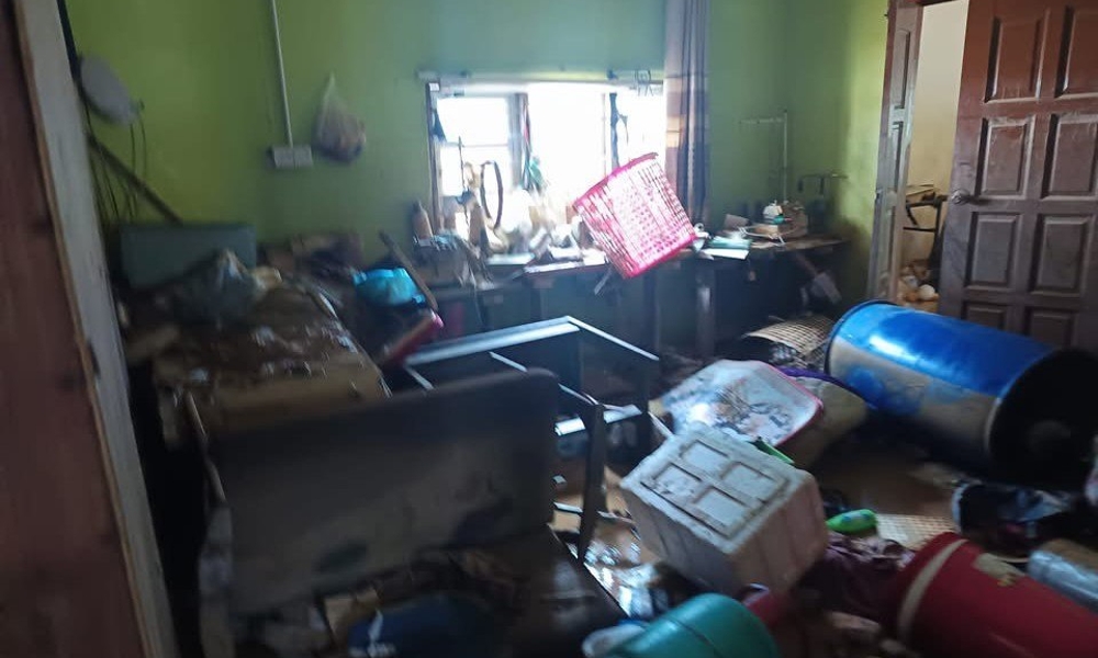 Rumah Ustaz Ridzwan ditenggelami air setinggi tingkap rumah. Sewaktu banjir memuncak, rumahnya menjadi seperti mesin basuh yang mengocak dan membolak balik segala isi yang ada.