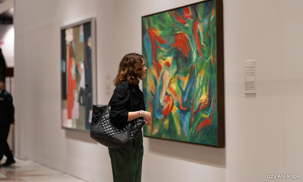Sebanyak 44 karya seni kontemporari Malaysia tergantung gagah di dinding Cultural Foundation.