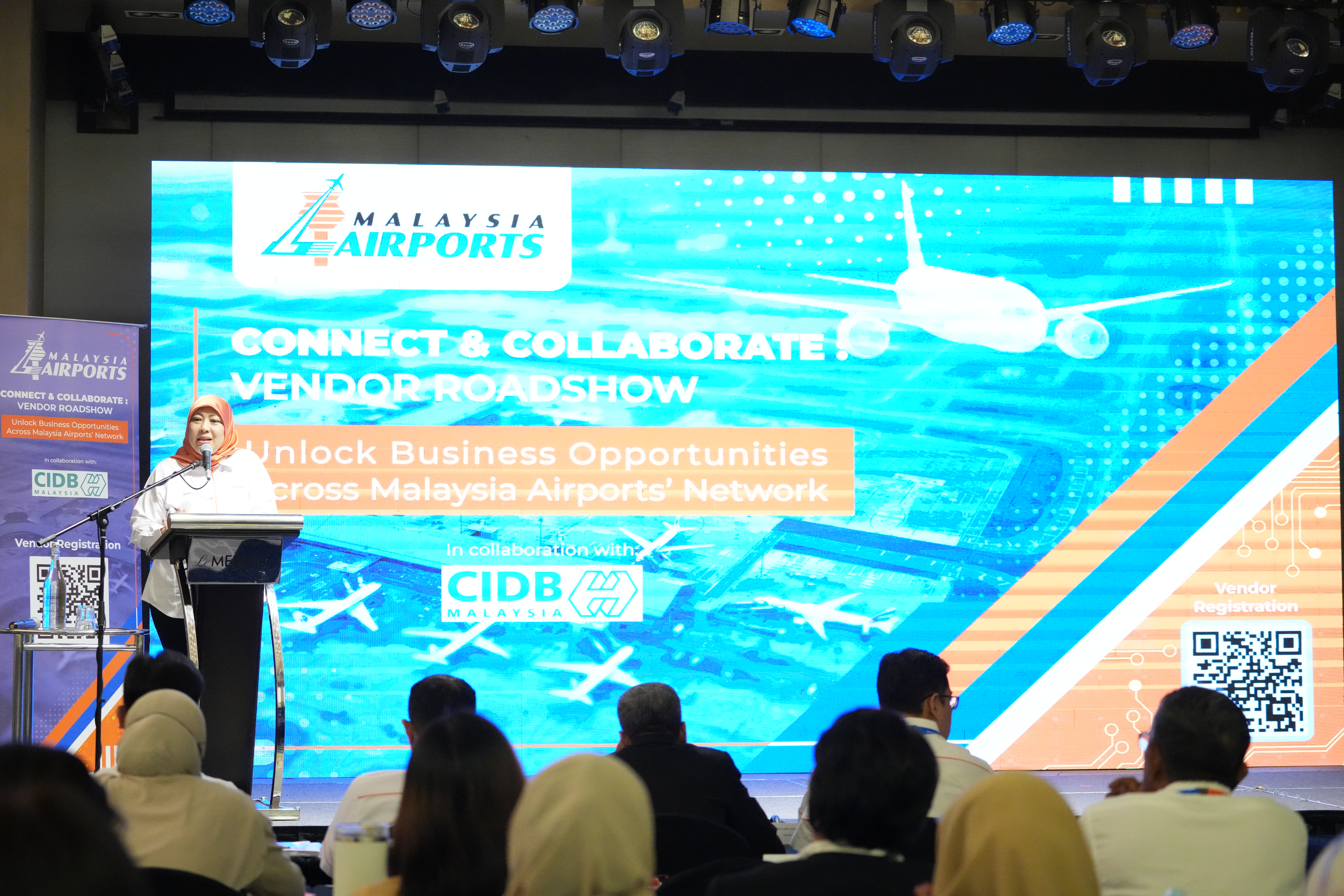 Seiring dengan itu, Malaysia Airports bersama CIDB telah menganjurkan “Connect & Collaborate Vendor Roadshow” pada tahun lalu di beberapa lapangan terbang terpilih di Semenanjung Malaysia serta di Sabah dan Sarawak. Program ini memberi peluang kepada vendor untuk mendapat taklimat mengenai proses-proses perolehan, menerima bimbingan pendaftaran dan sokongan teknikal serta memahami cara menggunakan platform e‑perolehan.