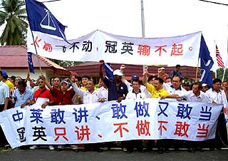 到了晚上,这一群“自虐”的人又跑到了连舞台都没有的组屋区楼下,举办从来没听说过的“人民论坛”。他们把许多城市人面对的课题,如“白小”、“博大华文学会”、“人权”等拿来和乡下人抱怨,当然吸引不了当地事不关己的居民,何况同时另外一条街有崇高领袖难得的请宴,大家当然蜂拥而至。留下一批“自虐”人士在自掏腰包布置、宣传之余,还得多费唇舌独撑“人民论坛”。