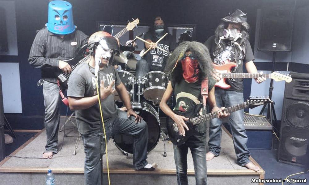 "Bukan senang bro , nak pakai topeng dua tiga jam. Muka tak kena angin rimas juga, kami terpaksa berlatih untuk biasakan diri," kata Raoh yang juga pemain gitar bass.
