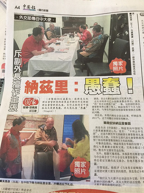 一次外交风波竟演变成内阁争执?继副外长之后,外交部长阿尼法昨天深夜表明,召见中国驻马大使黄惠康乃他的决定,没有任何可议之处。