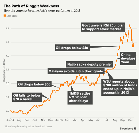 Foreign investors are noticing. They pulled US$4.6 billion from stocks and bonds last quarter and sent the currency to a 17-year low. While the ringgit has since recovered alongside emerging market currencies it’s still down about 15 percent this year, the worst performer in the Asia Pacific region. Approved foreign direct investment fell about 42 percent in the first half of 2015 to RM21.3 billion.