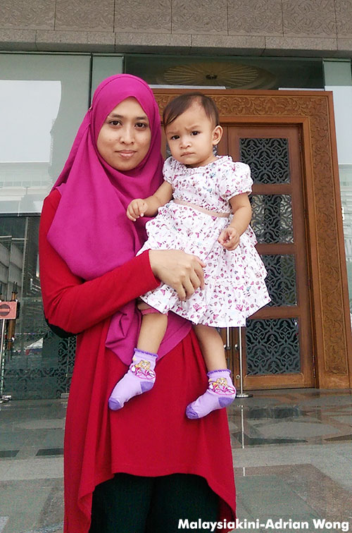 布城司法宫门前,甫过一岁的奥妮(Auni Ruqayyah)在母亲纳兹拉(Nadzirah Yaakop)陪伴下,无忧无虑地玩耍嬉戏,似乎不知父亲卡立依斯玛因言获罪,羁押在柔州一间扣留所之中。
