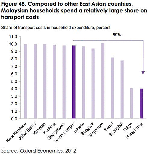 According to the World Bank’s Malaysia Economic Monitor June 2015 report, those living in Kuala Lumpur and other Malaysian cities spend almost 10 percent of their total expenditure on transportation.